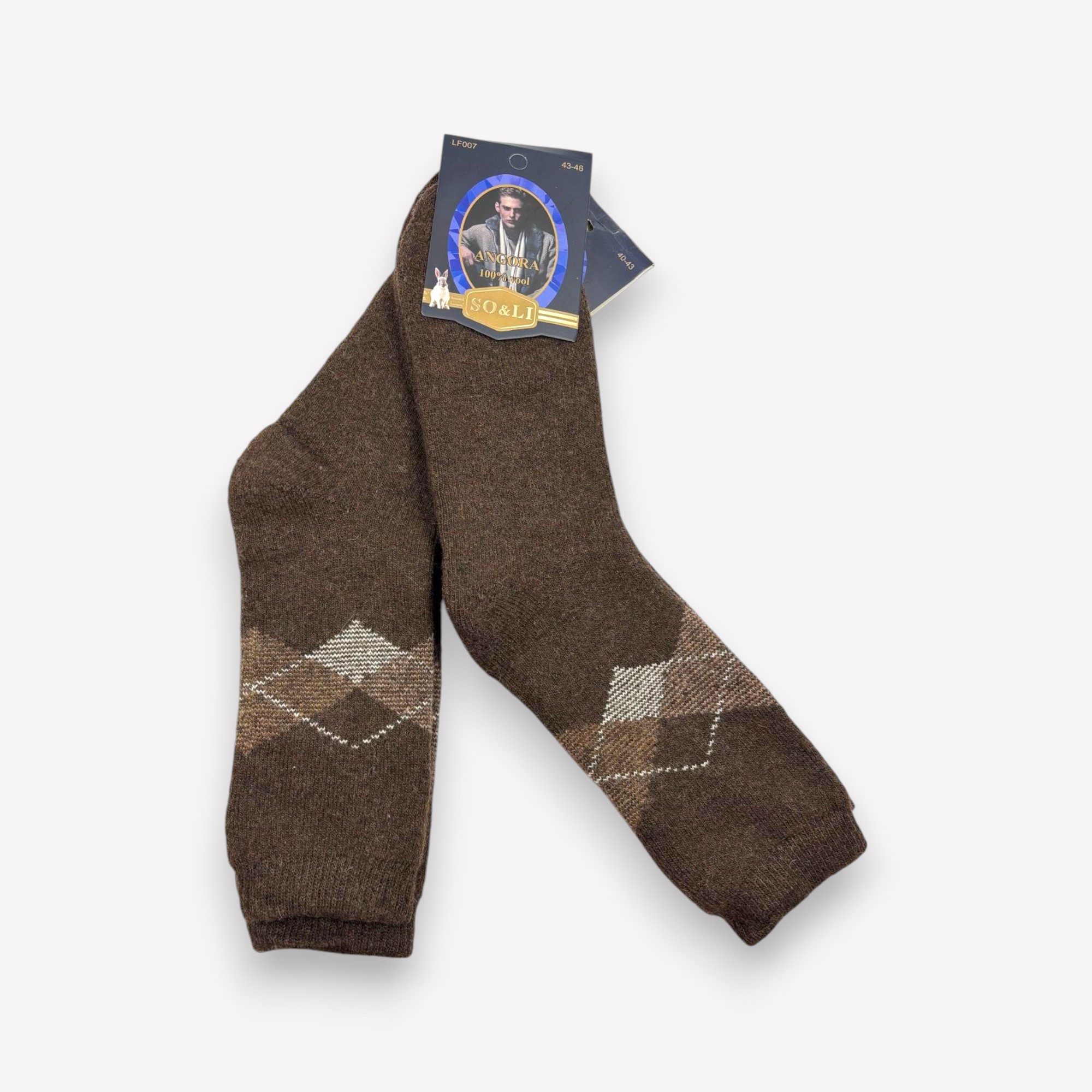 Siltas vīriešu zeķes no angoras ar klasisku rakstu.